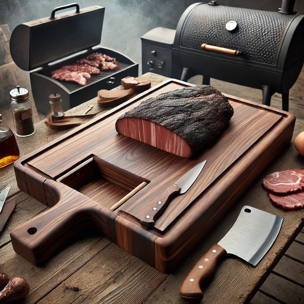 The Behemoth Board is the ultimate fusion of craftsmanship and functionality. Handcrafted from premium hardwood, this 3-inch-thick cutting board is built to tackle the toughest BBQ and kitchen tasks. Featuring a recessed, detachable drawer for effortless cleanup, it’s designed for pitmasters and grilling enthusiasts who demand durability and style. With rugged elegance and unmatched practicality,